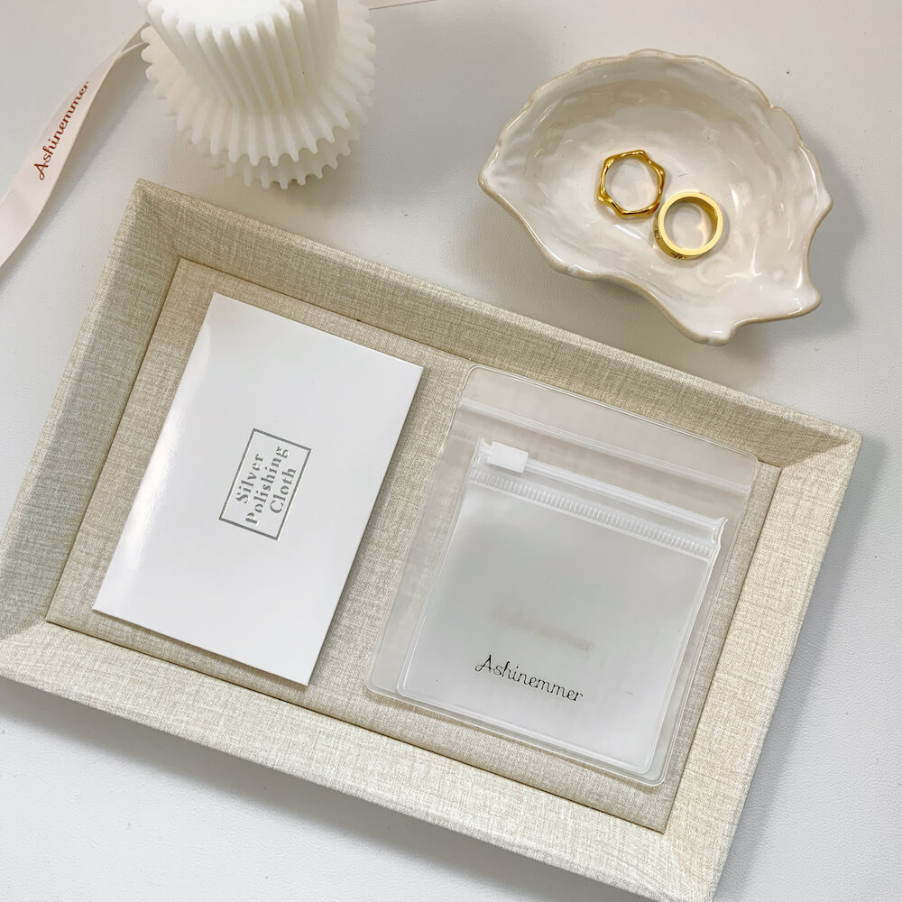 When not being worn, please store your piece in the complimentary resealable plastic bag to prolong its life and protect against scratches. Fingerprints or light marks can be gently wiped away using the provided polishing cloth.