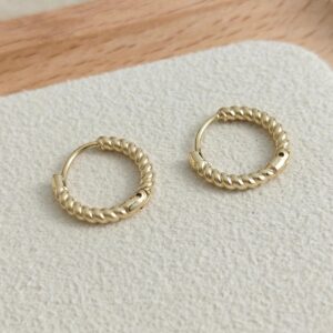 18K Gold-Plated Stainless Steel Medium Small Twisted Huggie Earrings (Water-Resistant)